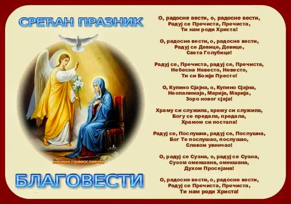 Он се јави праведној и светој Ани и рече јој да ће затруднети и родити преблагословену кћер која ће се звати Марија.