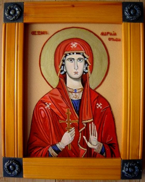 Пред саму смрт - јави јој се Господ Исус с ангелима. Посечена беше у време цара Диоклецијана, но душом и силом оста у животу на небесима и на земљи. Једна рука свете Марине налази се у ман. Ватопеду у Светој Гори. У Албанији пак, на планини Ланга више Охридског језера, налази се манастир свете Марине са једним делом њених чудотворних моштију. Многобројна чудеса догађала су се и догађају у овом манастиру, којих су сведоци не само хришћани него и муслимани. ------------------- Толико поштовања имају Турци према овој светињи, да никад нису хтели дарнути ни у светињу, нити у имовину овог манастира. Једно време Турчин је био тутор овог манастира. ------------------- Народна песма вели: --------------------------- '...Огањ носи Огњена Марија, Тамјан пали Громовник Илија, Свети Врачи помазују миром, а Крститељ водом покрепљује...'