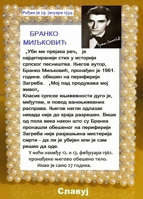 Бранко Миљковић, је био један од најзначајнијих српских пјесника 20. вијека. Почео је да пише као средњошколац, а 1957. године објавио је прву збирку пјесама "Узалуд је будим".