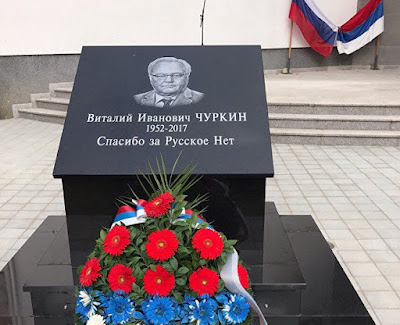На меморијалној плочи израђеној од црног мермера уз име, године живота и смрти и портрет Виталија Чуркина стоји и натпис на руском: