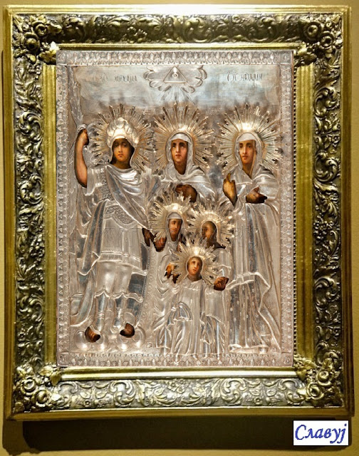 Мртва тела својих кћери узе Софија однесе ван града и тамо чесно сахрани. И оста на гробу њиховом три дана и три ноћи молећи се Богу, и у томе предаде дух свој Богу хитајући у рајска насеља, где је блажене душе њених славних кћери чекаху.