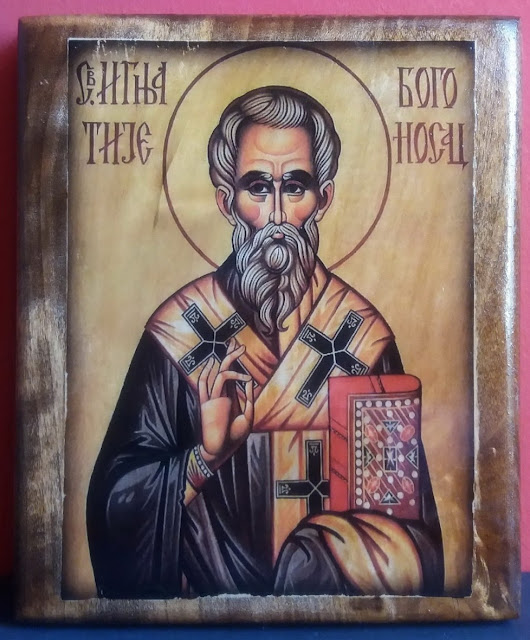 Такав начин појања открио се св. Игњатију међу анђелима на небесима. Пострадао је за Господа свога, Исуса Христа, зато што не хтеде, на захтев цара Трајана, да се одрекне своје вере и принесе жртву идолима. Због тога, цар нареди да га окују и баце лавовима у арену, а они га растргоше и изједоше, тако да је остало само срце његово и пар костију.
