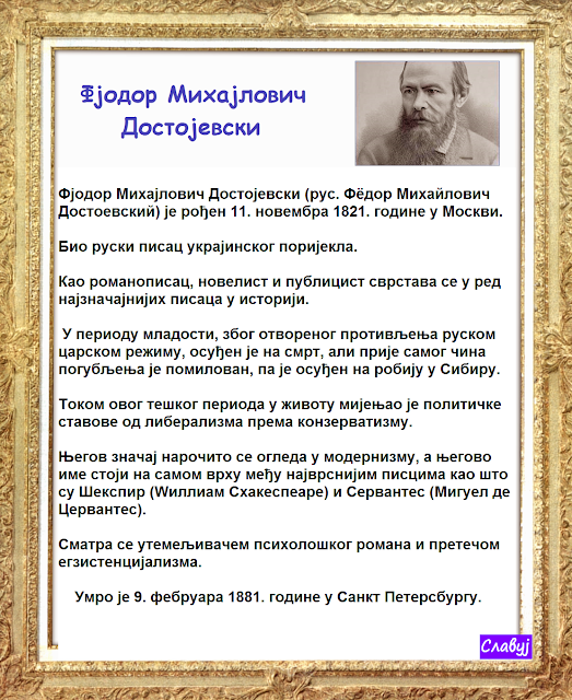 ВЕЛИКОГ ДОСТОЈЕВСКОГ