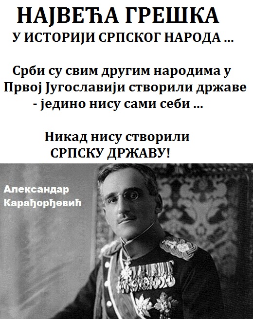 Знам да се не могу брисати нити прекрајати историјске чињенице, али наравно, по мени, мислим да је на данашњи дан 1. децембра 1918. године, направљена највећа историјска грешка у историји српског народа.
