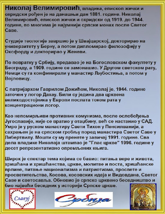 Имао сам срећу. Некад давно прије рата у БиХ много тога сам успио да пронађем о Светом владики ВЕЛИМИРОВИЋУ и много тога да прочитам. По нешто сам и научио, али нажалост - никад довољно. Тек тада сам схватио да сам о многим стварима само по нешто знао или онако површно сам знао.