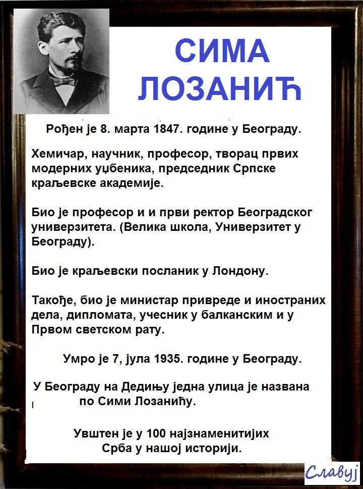 8. марта 1847. године рођен је славни српски научник СИМА ЛОЗАНИЋ