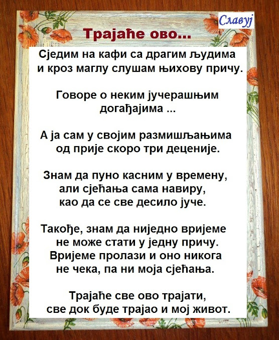 Дошла су таква времена у којима ни рођени брат са братом не може. Са сусједима треба живјети у миру, јер је мир најважнији. Свима је познато да је Србија деценијама на својој грбачи носила друге народе и републике да би јој управо ти народи и те републике сломиле кичму.