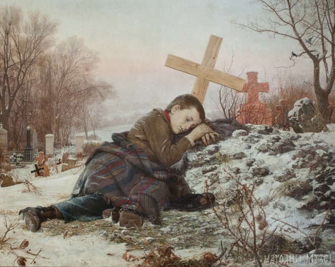 Суморани призори осликаног гробља, смрзнуте земље, крста и раке, преко које лежи дијете, лежи на вјечној кући своје мајке, огрнут слабим покривачем, скрхан болом за изгубљеном мајком, навели су младог пјесника, бунтовника и праведника, да напише ову пјесму.