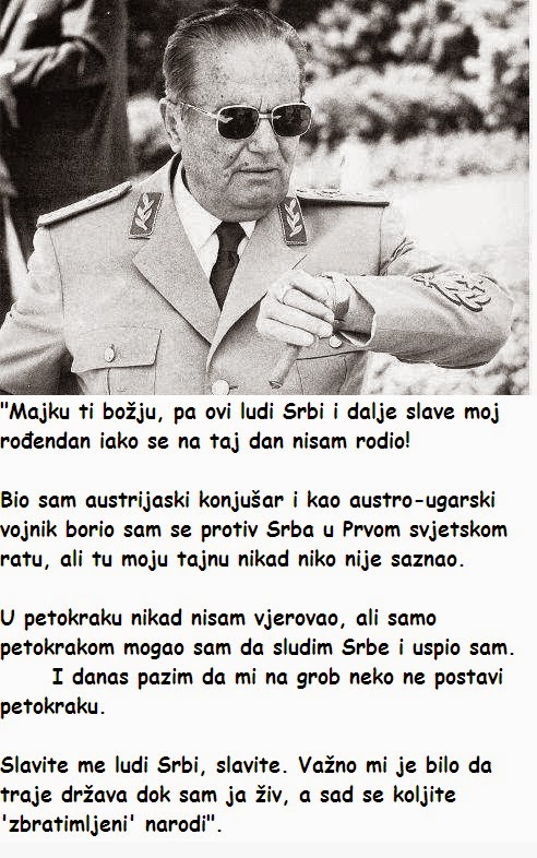 И сасвим на крају. Зар се нико од Срба не запита зашто се Хрвати и званична Хрватска не боре да се посмртни остаци Јосипа Броза из Београда измјесте у Загреб или негдје у Хрватску.