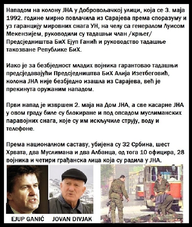 Ратни члан Предсједништва БиХ Ејуп Ганић никад није оптужен за злочин 3. маја 1992. године у сарајевској Добровољачкој, данас Улици Хамдије Крешевљаковића.