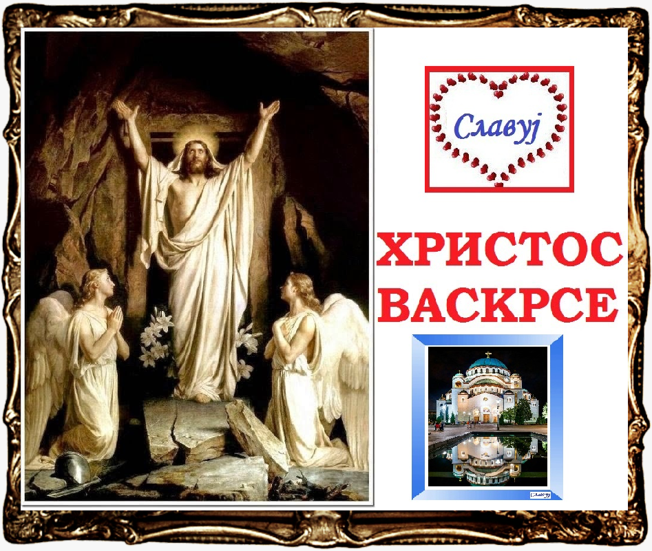 …И изишавши брзо из гроба, са страхом и радошћу великом похиташе да јаве ученицима његовим. А кад иђаху да јаве ученицима његовим, и гле, срете их Исус говорећи: Радујте се! А оне приступивши ухватише се за ноге његове и поклонише му се.