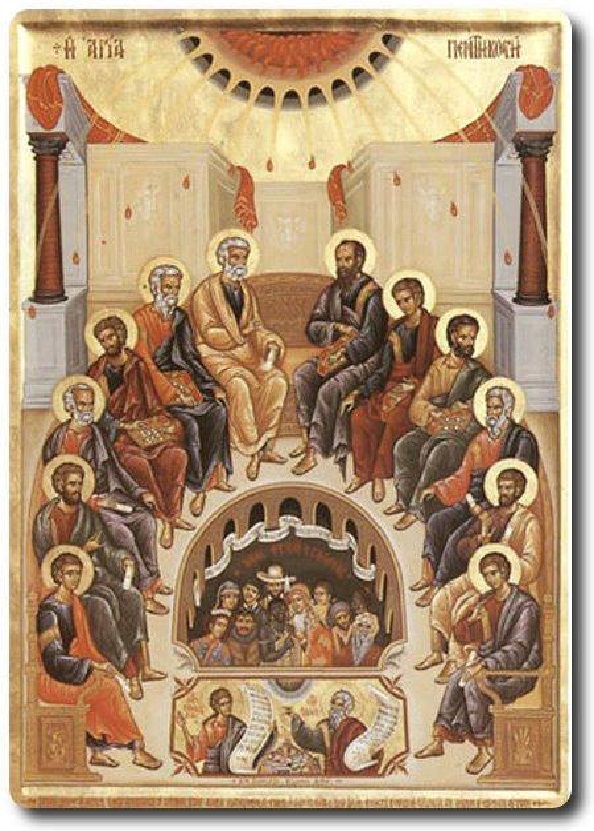 После Христовог вазнесења ученици су остали у Јерусалиму и у једној соби на Сиону често су се окупљали и заједно се молили Богу очекујући с нестрпљењем обећанога Утешитеља, Духа Светога, који од Оца исходи.