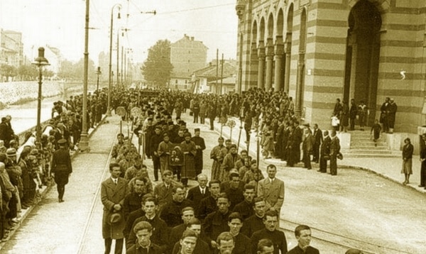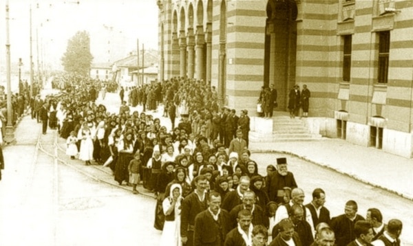 Некад било ... Сарајево, 16. и 17. септембар 1933. године ... Литија у центру Сарајева, предвођена тадашњим патријархом Варнавом уз саслужење епископа и уз пратњу Војске Краљевине - Вијећница Сарајево ...