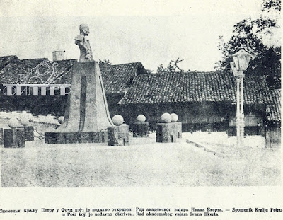 Након смрти краља Петра I Карађорђевића 1921. године, широм Kраљевине почеле су ницати његове бисте, спомен-плоче и споменици.