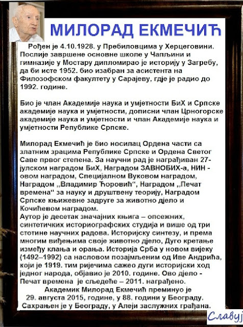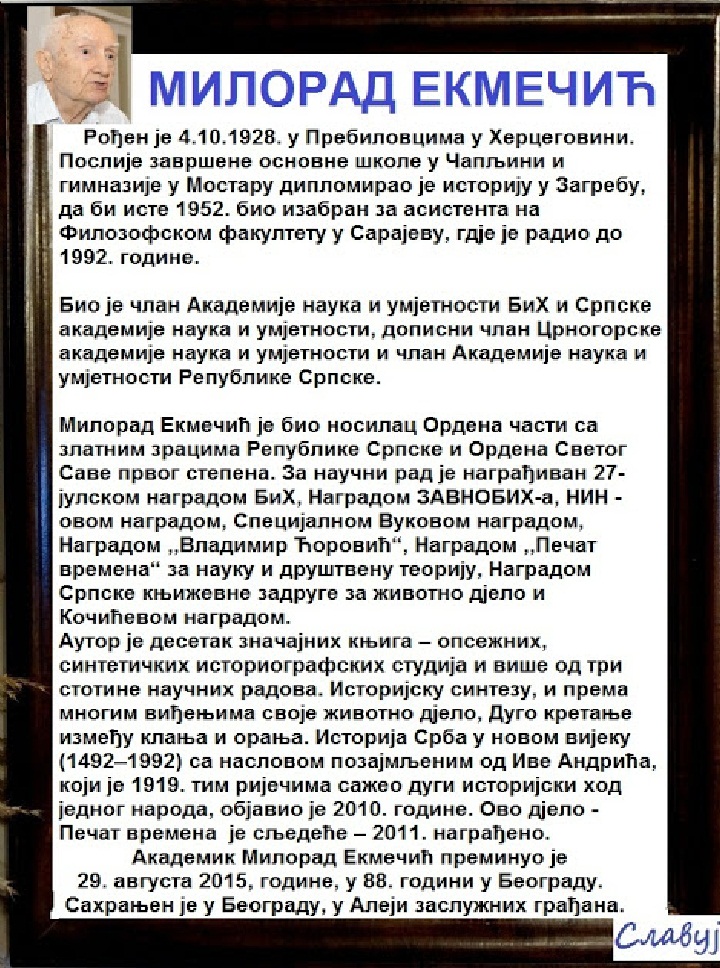 Академик Милорад Екмечић био је један од највећих српских историчара који је за собом оставио бројна дјела на којима ће се темељити знање будућих генерација.