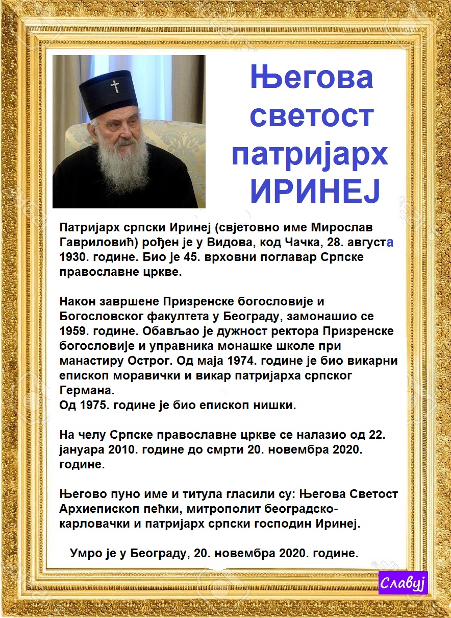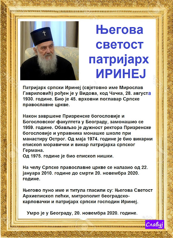 Његова светост Архиепископ пећки, митрополит београдско-карловачки и патријарх српски.