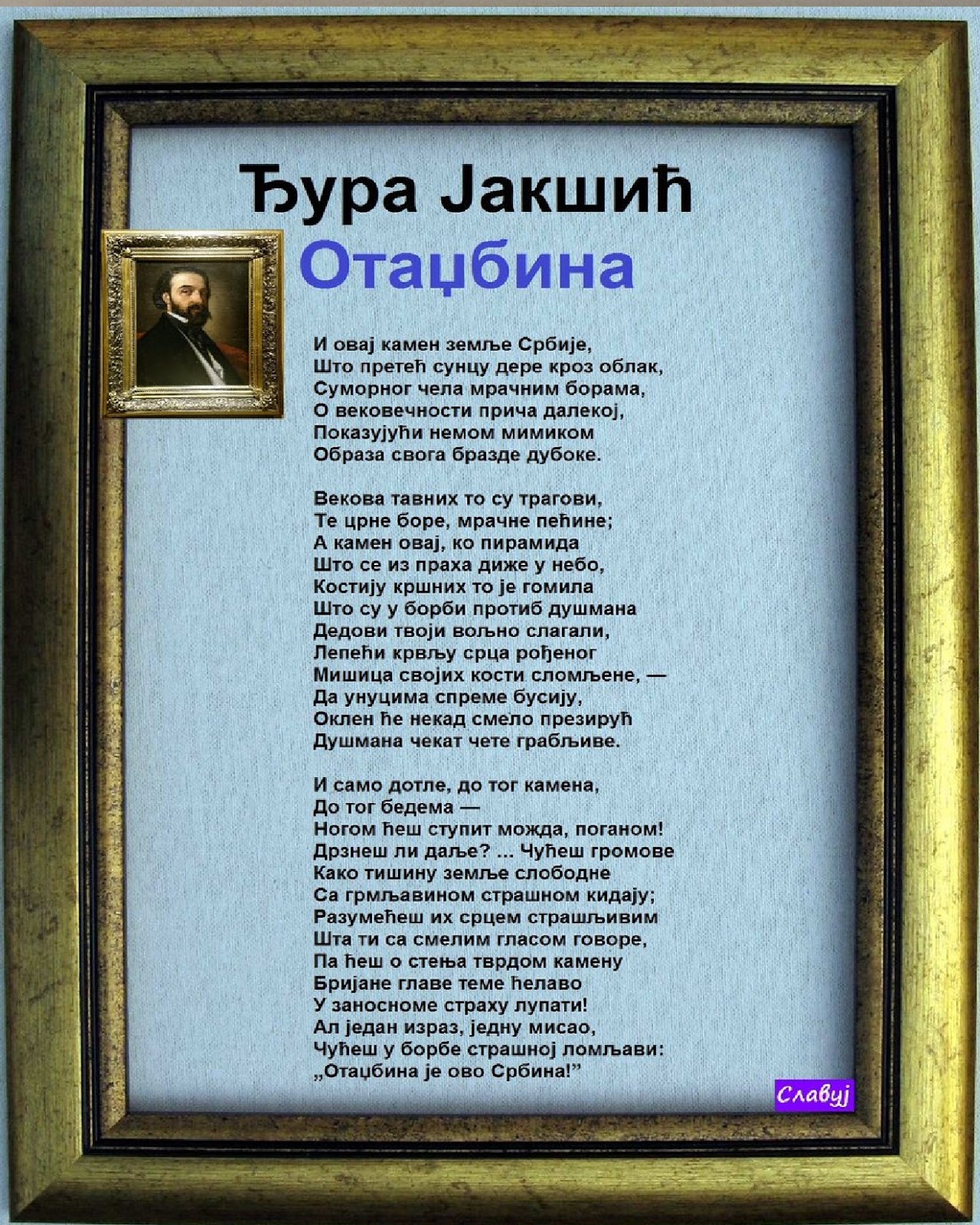 Познати српски књижeвник и сликар Ђура Јакшић је био највећи лиричар српског романтизма и један од најдаровитијих српских сликара 19. вијека. Поред поезије, која је најврједнија у његовом књижевном опусу, писао је приповијетке и херојске поеме (На Липару, Поноћ, Падајте браћо, Отаџбина, Сеоба Србаља, Станоје Главаш). Умро је у Београду 1878. године.