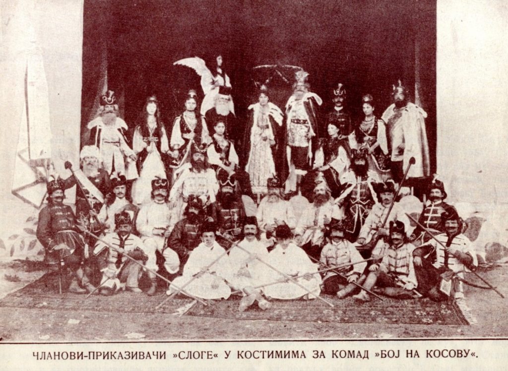 Најозбиљнији покушај стварања једног сталног српског позоришта пада у 1911. години, у Сарајеву. Певачко друштво „Слога“ имало је, у сопственој дворани, малу позорницу на којој се чешће приказивала публици једна дилетантска трупа, састављена од чланова „Слоге“. Слобода кретања ових људи на позорници, њихова жива љубав према позоришној вештини, уз то и већа култура свратили су на себе пажњу српских јавних радника у Сарајеву, нарочито уредника Народа, публицисте Ристе Радуловића и његовог главног сарадника, књижевника Вељка Милићевића. Дошло се на мисао да се представе више систематски организују, и да се у њих унесе неки план и распоред. Инициативом Г. Владимира Ћоровића претвори се ова дилетантска трупа, која је играла с времена на време, у сталну. Нарочит позоришни одбор, коме је стајао на челу Г.Ћоровић, организовао је представе сваких петнаест дана, и доцније, кад су оне имале и моралног и материалног успеха, и чешће. Сценографске послове позоришта водио је сликар Г. Тодор Швракић, а главну режију био је узео Г. Александар Милојевић, члан Српског Kраљевског Позоришта у Београду, нарочито послан, за ову сврху, у Сарајево. Он је успео, да би појачао квалитет трупе, да окупи око себе и неколико уметнијих глумаца по професији, и побринуо се да из гардеробе београдског Позоришта добије нешто српских историјских костима и историјског оружја. Овај гардеробни фонд, који је за рата остао сачуван, послужио је при садашњем оснивању Народног Позоришта у Сарајеву као први, провизорни темељ. Репертоар је био готово искључиво састављен из лаких француских комедија, не много пробираних, али је имао довољно и наших позоришних дела, старијег и млађег датума, историјских и из обичног грађанског живота, у првом реду неколико фрагмената Г. Нушића, затим Kочићева Јазавца пред Судом, добро окрљаштрена од цензуре, али одушевљено примљена.