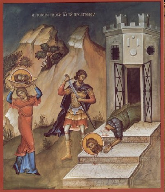 Ирод нареди те Јована посекоше у тамници и донеше главу његову на тањиру. Ученици Јованови ноћу узеше тело свога учитеља и чесно сахранише, а Иродијада избоде иглом језик Јованов, па главу закопа на неко нечисто место. Шта је даље било с главом Јовановом може се читати под 24. фебруаром. Али убрзо постиже Божја казна ову групу злотвора.