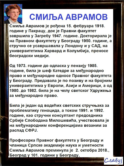 За многе велика Српкиња и патриота, за друге националиста и десничар, за Смиљу Аврамов се често каже да је током 90-их била у групи тзв. Милошевићевих академика, писао је "Данас" поводом њеног стотог рођендана.