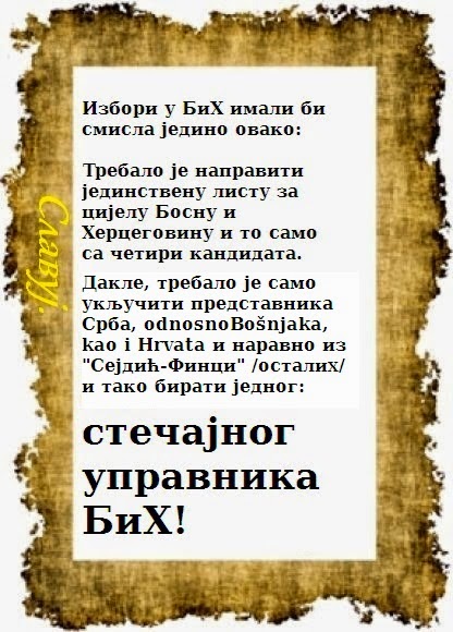 У недјељу на Михољдан је још један важан догађај. Треба да се одрже избори у Босни и Херцеговини. Све странке приводе крају предизборне активности и кампање у којима су мјесец дана износили своје програме за будућност народа, нације, државе, ентитета и разних других субјективитета. Кад сам код субјективитета онда желим да изнесем свој објективан став о неким стварима које су се могле чути у електронским медијима и прочитати у штампи.
