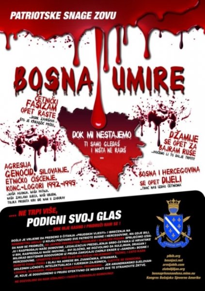 Podsjećamo: prije javne rasprave o amandmanu za rješavanje statusa Brčko Distrikta u zgradi državnog Parlamenta pojavio se plakat na kojem je, između ostalog, pisalo:„Bosna umire, dok mi nestajemo“, „Četnički fašizam opet raste“, „Dignimo svoj glas“, „Dodik završava ono što je počeo Karadžić“. Plakat kojim je izraženo protivljenje amandmanskom djelovanju na Ustav BiH, dogovorenom u Prudu, potpisale su „patriotske snage“, među kojima su navedeni i Patriotska liga BiH, udruženje Zlatni ljiljani i Bošnjački kongres Sjeverne Amerike.