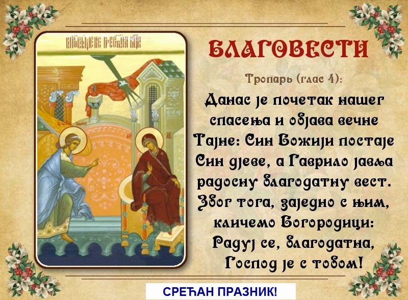 БЛАГОВИЈЕСТИ - СРЕЋАН ПРАЗНИК!