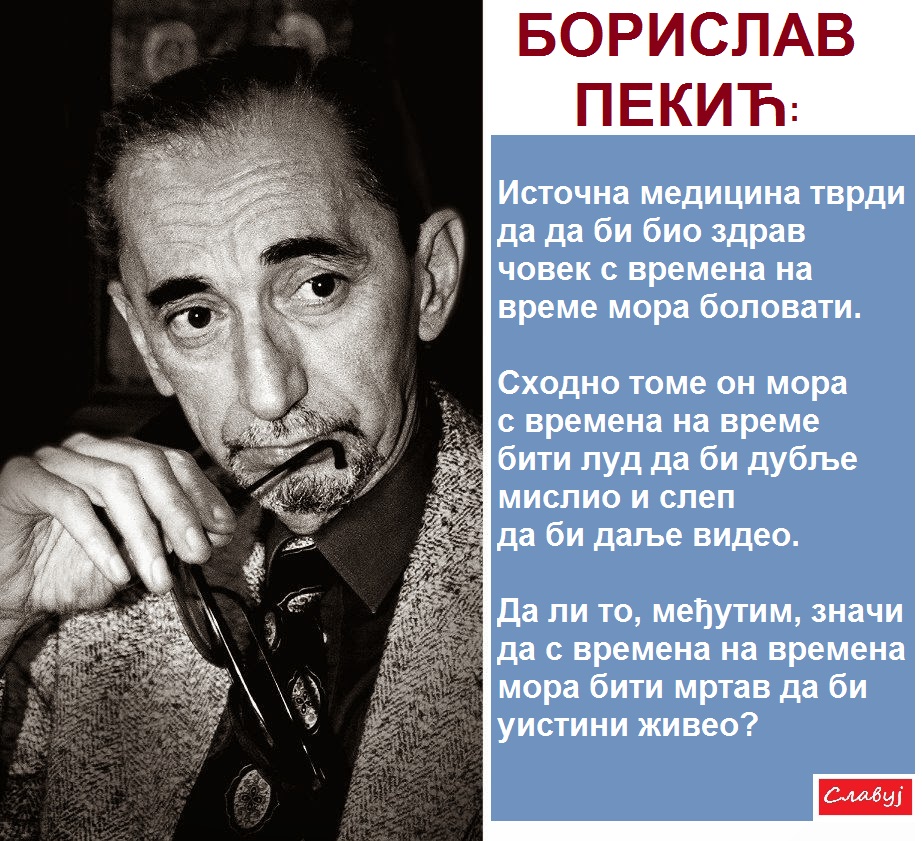 Пјевали би ми, али како кад нам се више плаче. Јер, само сит човјек може да пјева. Сити јесмо свих ових великих и малих, "наших или њихових", сасвим је свеједно. Сви су наши, али и њихови и сви су ту, увијек близу, на дохват руке. Од свуда искачу.