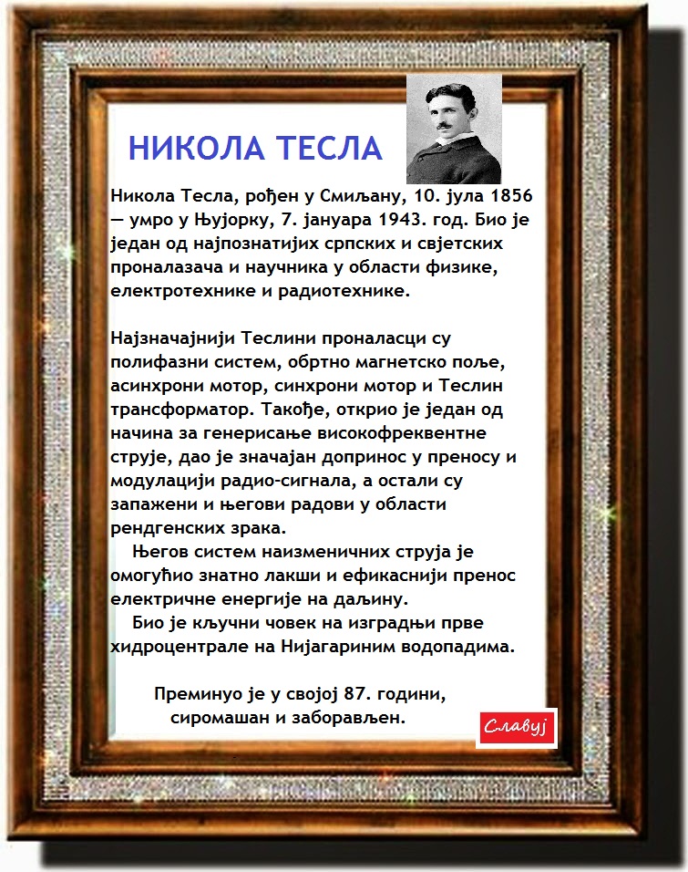 НИКОЛА ТЕСЛА Уврштен у 100 најзнаменитијих Срба у нашој историји