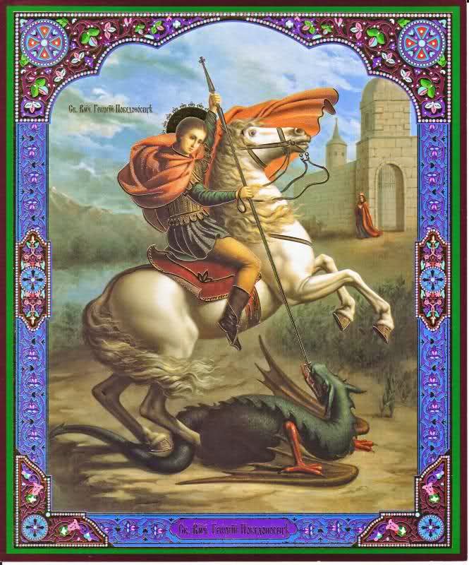 Данас је велики хришћански празник - Свети Великомученик Георгије - Ђурђевдан. За тај велики прољећни празник плодности везани су многи обичаји - устаје се рано и купа у рекама, одлази у природу, бере биље којим се крми стока, плету вијенци и њима украшавају куће, стока и кошнице, опасује се врбовим и дреновим прућем, у њиве се постављају крстови од лескове младице, коље се жртвено јагње... У доба војевања Срба против Турака настала је изрека "Ђурђев данак, хајдучки састанак". ---------------------------------------------------------------------- У вријеме када римским царством владаше безбожни цар Диоклецијан, настало је страшно мучење и прогон Христових сљедбеника. Свети Георгије родом беше из Кападокије и још од малена би одгајен и васпитан веома побожно. Родитељи су му били угледни и благочестиви људи. Отац му је мученички пострадао за Христа, а мајка његова после тога преселила са њим у своју родну Палестину.