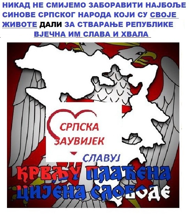 ------------------ ДАНАС КАД ОБИЉЕЖАВАМО ДАН БОРАЧКЕ ОРГАНИЗАЦИЈЕ РЕПУБЛИКЕ СРПСКЕ НАЈВЕЋУ ЗАХВАЛНОСТ МОРАМО УПУТИТИ НАЈБОЉИМ СИНОВИМА СРПСКОГ НАРОДА КОЈИ СУ ДАЛИ СВОЈЕ ЖИВОТЕ ЗА СТВАРАЊЕ РЕПУБЛИКЕ СРПСКЕ