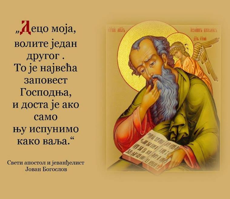 На Тајној Вечери ставио је био главу на прси Исусове. Када су сви други били оставили распетога Господа, Јован је са светом Богомајком остао под Крстом. По наређењу Господа он је после био као син светој Дјеви Марији и брижно је служио и чувао до успенија њеног.