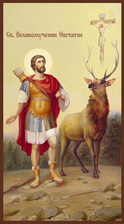Autor sjovicicslavuj | 3 Oktobar, 2020 | read_nums (459)Велики војсковођ римски у време цара Тита и Трајана. Иако незнабожац, Плакида (тако му беше име незнабожачко) беше човек праведан и милостив, сличан капетану Корнилију, кога крсти апостол Петар (Дап 10). Ходећи једном у лов, он погна једног јелена. Божјим Промислом јави се крст светао међу роговима јелена, и дође глас Господњи Плакиди, који овога упућиваше, да иде свештенику хришћанском и крсти се. На крштењу он доби име Евстатије, његова жена – Теопистија (Боговерна), а њихови синови – Агапије и Теопист.