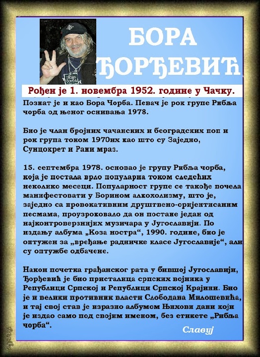 Autor sjovicicslavuj | 1 Novembar, 2021 | read_nums (229) 1. новембра 1952. године рођен јевелики српски умјетникБОРА ЂОРЂЕВИЋ