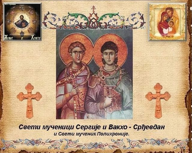 Ови свети и дивни мученици и јунаци вере Христове беху најпре први великаши на двору цара Максимијана. И сам их цар уважаваше много због храбрости, мудрости и верности. Али кад чу цар, да су ова два великаша његова хришћани, промени љубав своју према њима на гнев.