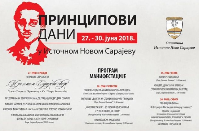 27. јуна, почела је културно-историјска манифестација “Принципови дани”.Манифестација, у организацији општине Источно Ново Сарајево, почеће концертом Основне и Средње музичке школе из Источног Сарајева и Музичке академије Универзитета у Источном Сарајеву који ће бити одржан у парку “Гаврило Принцип”.