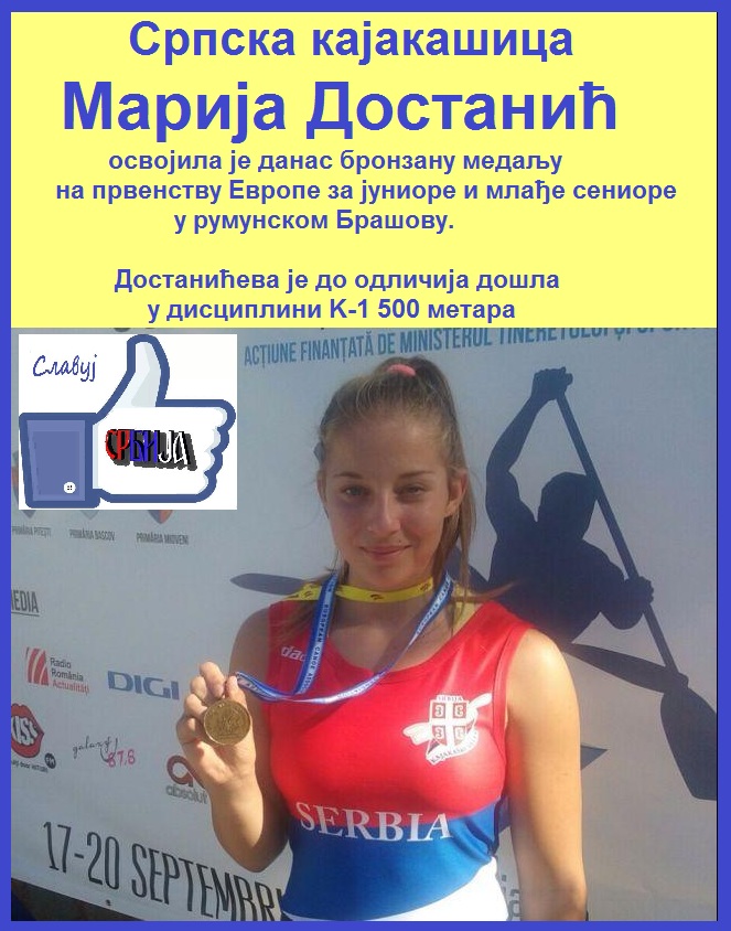Српска каjакашица Mариjа Достанић освоjила jе данас бронзану медаљу на првенству Eвропе за jуниоре и млађе сениоре у румунском Брашову.